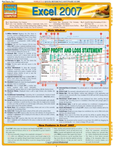 Excel 2007 (Quick Study Computer) by Inc. BarCharts accessibility Books LIbrary as well as its powerful features, including thousands and thousands of title from favorite author, along with the capability to read or download hundreds of boos on your pc or smartphone in minutes.